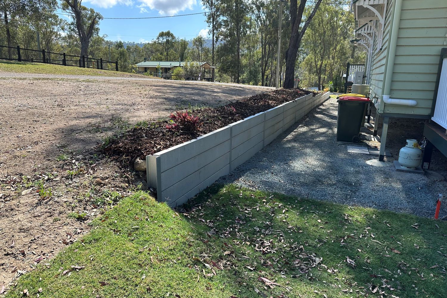 • Retaining walls and landscaping for easy care