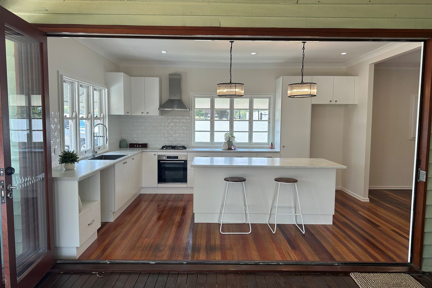 • French doors opening from the kitchen to the external deck, perfect for entertaining